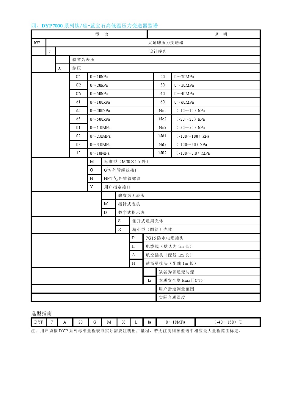 DYP7000系列鈦 硅-藍寶石高低溫型壓力變送器