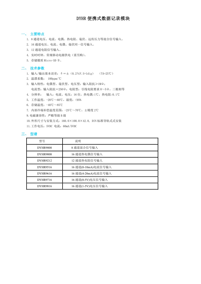 DYHR便攜式數(shù)據(jù)記錄模塊