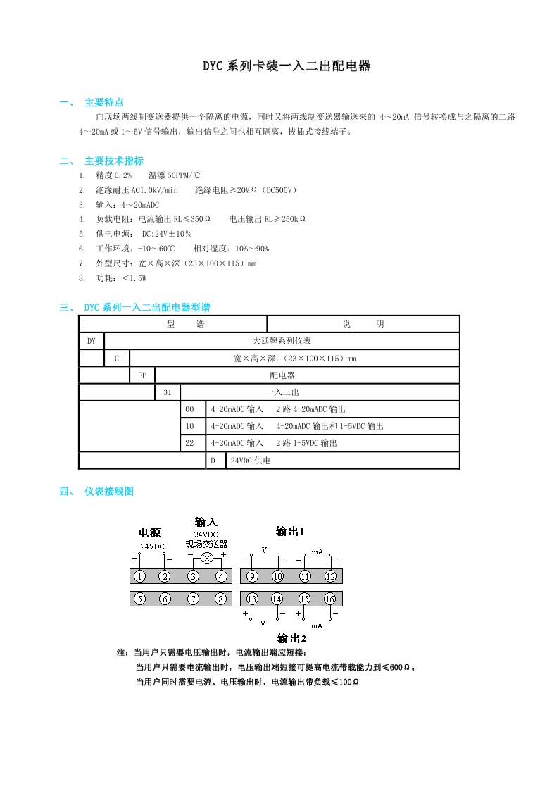 DYC系列卡裝二入二出配電器
