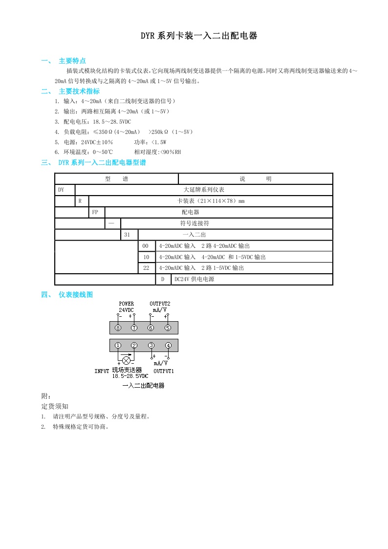 DYR系列卡裝一入二出配電器