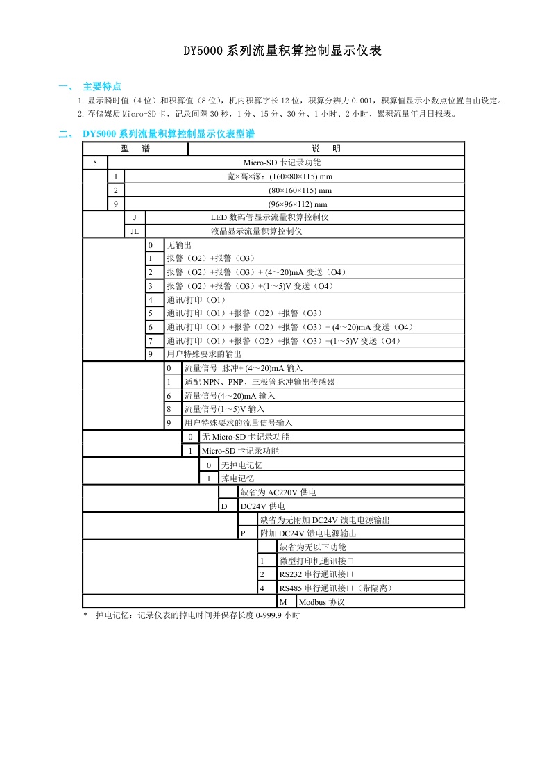 DY5000(J)系列流量積算控制顯示儀表