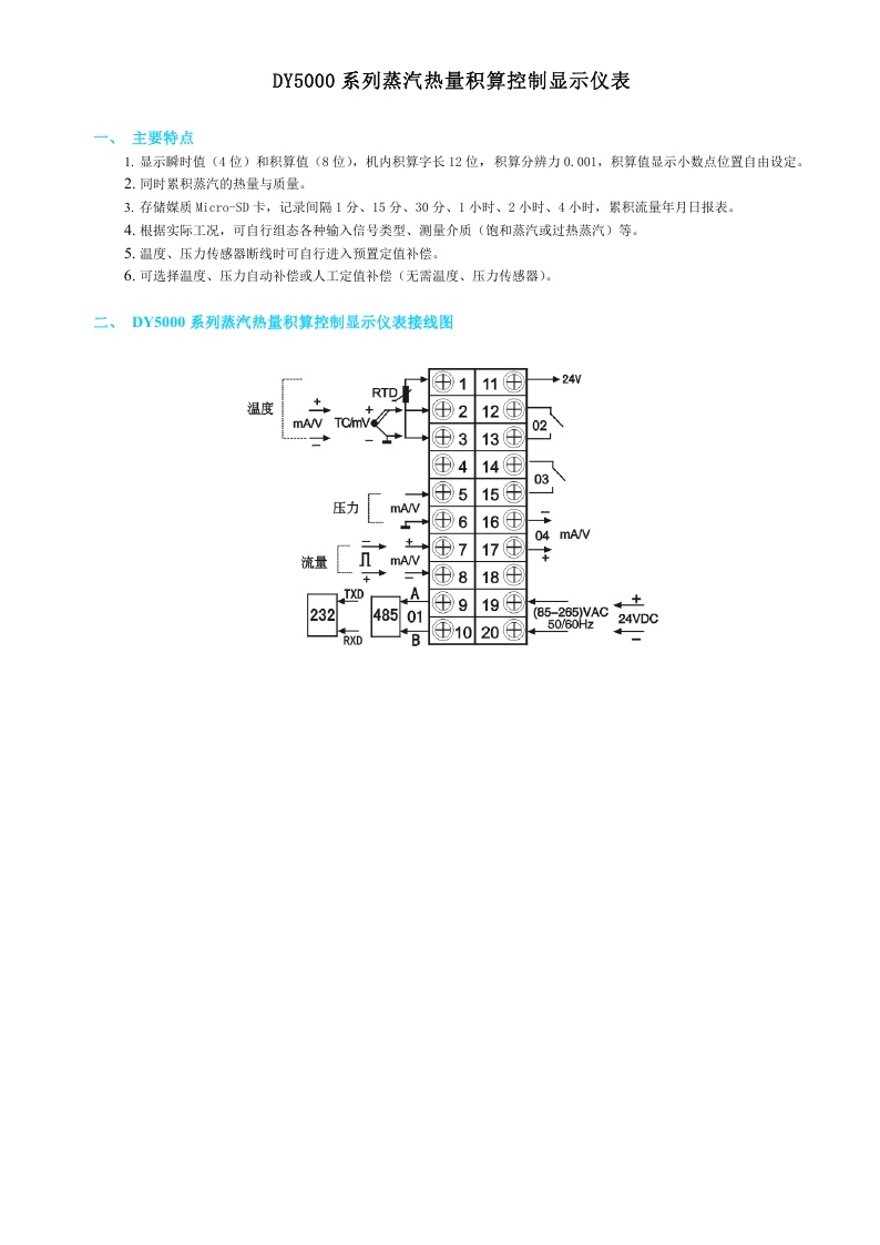 DY5000(S)系列蒸汽熱量積算控制顯示儀表