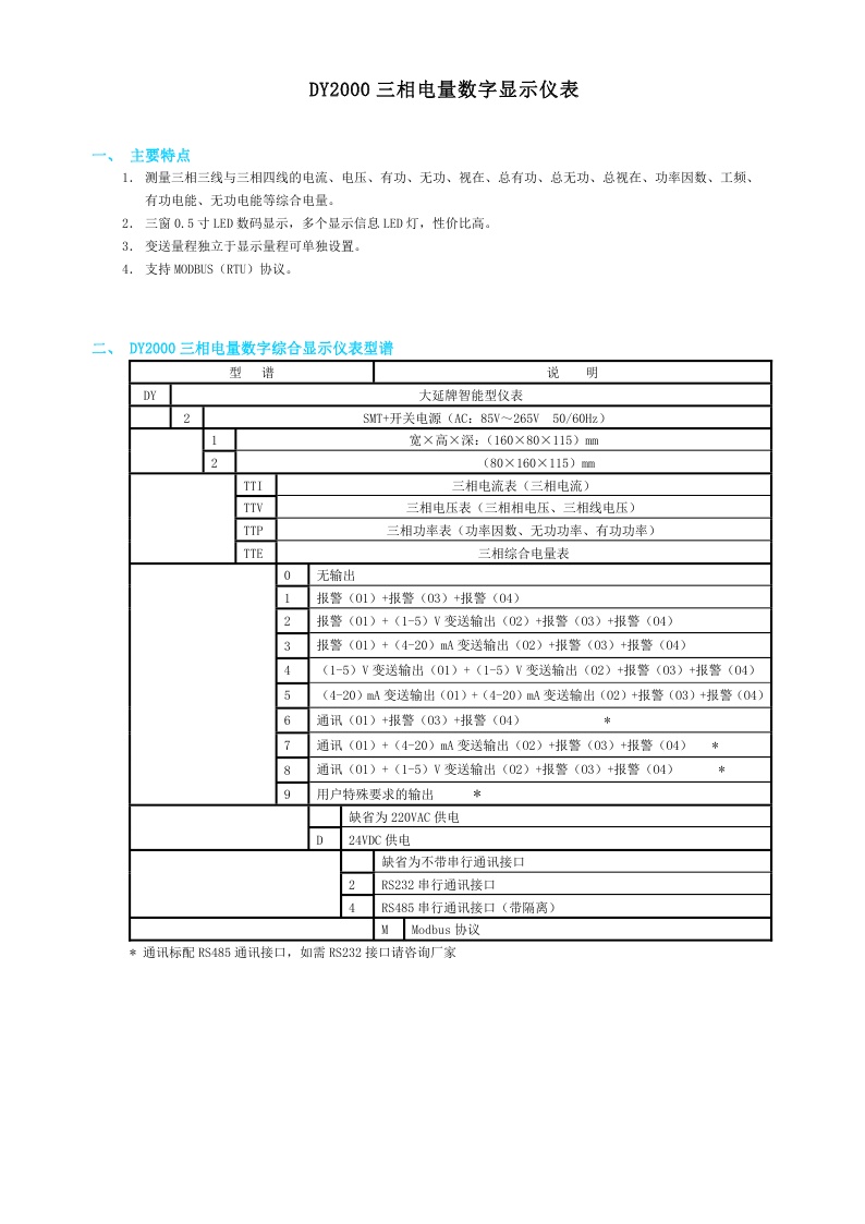 DY2000(TTEL)液晶顯示三相綜合電量?jī)x表