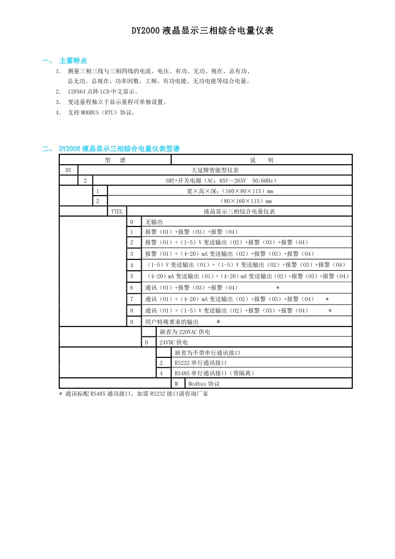 DY2000(TTEL)液晶顯示三相綜合電量儀表