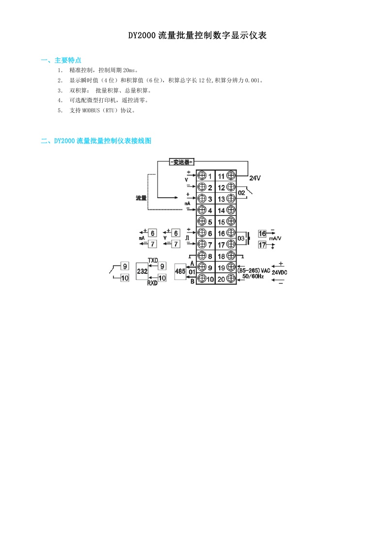 DY2000(H)流量批量控制數(shù)字顯示儀表
