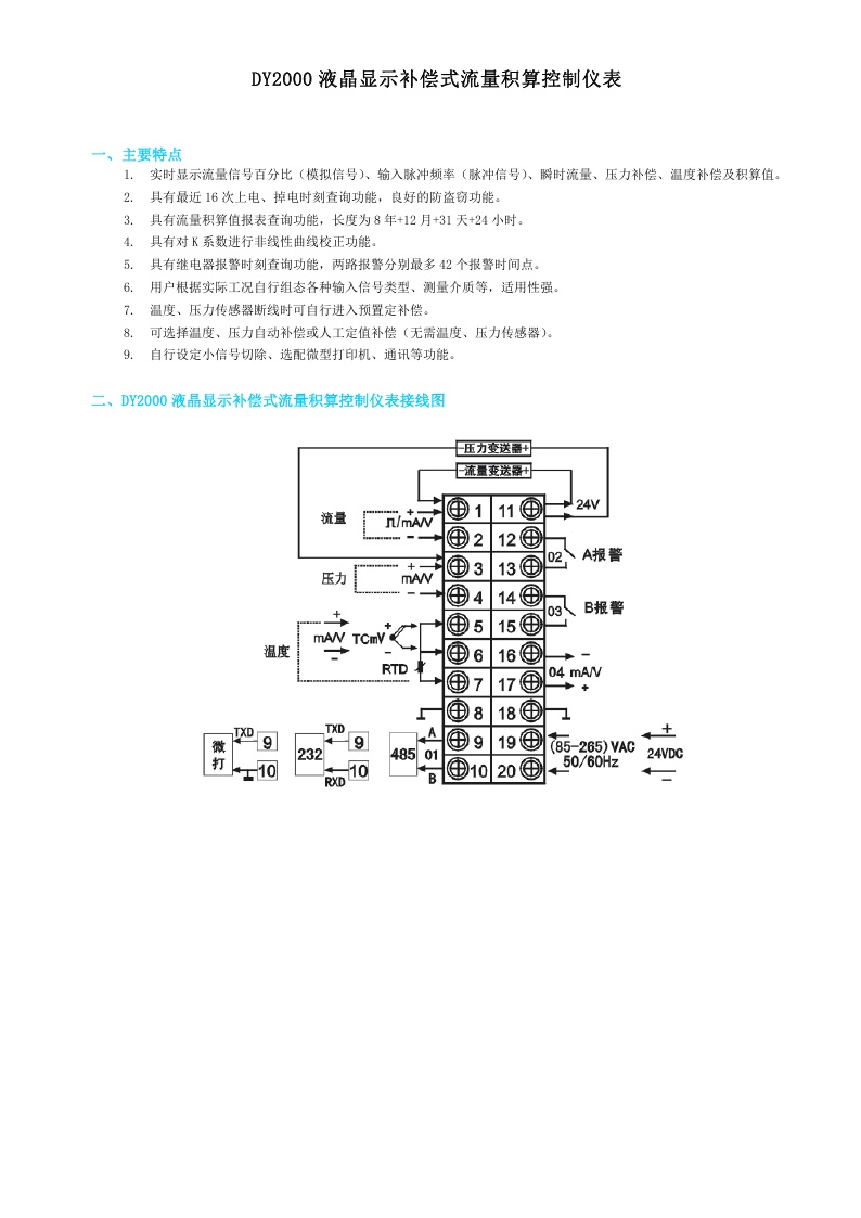DY2000(LL)液晶顯示補(bǔ)償式流量積算控制儀表