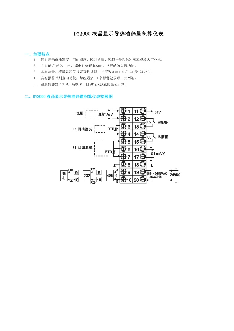 DY2000(WLO)液晶顯示導(dǎo)熱油熱量積算儀表