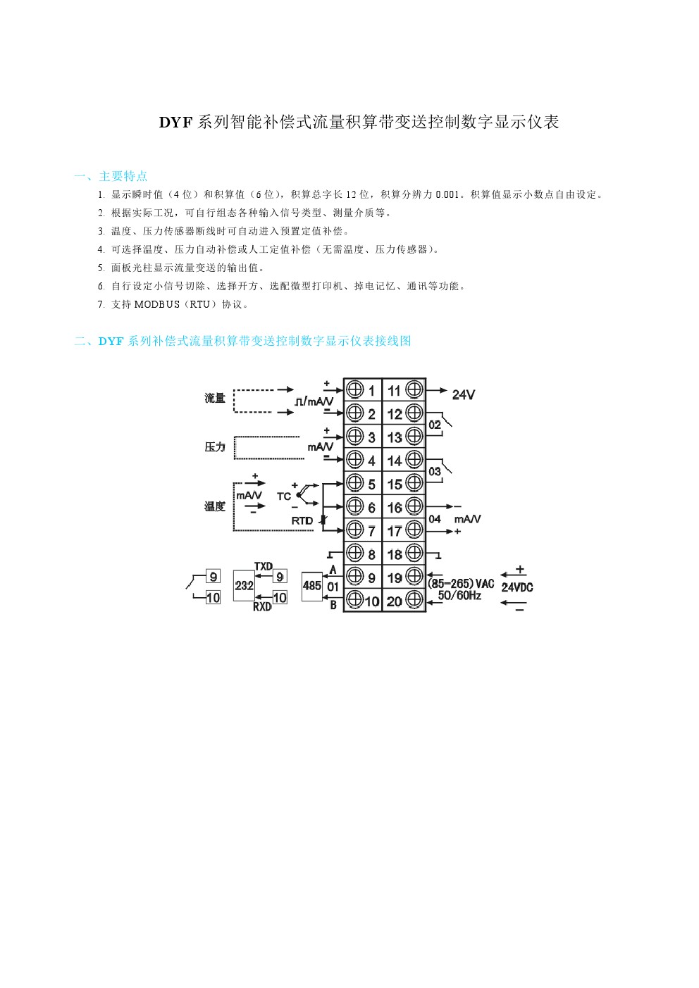 DYF系列補(bǔ)償式流量積算帶變送控制數(shù)字顯示儀表