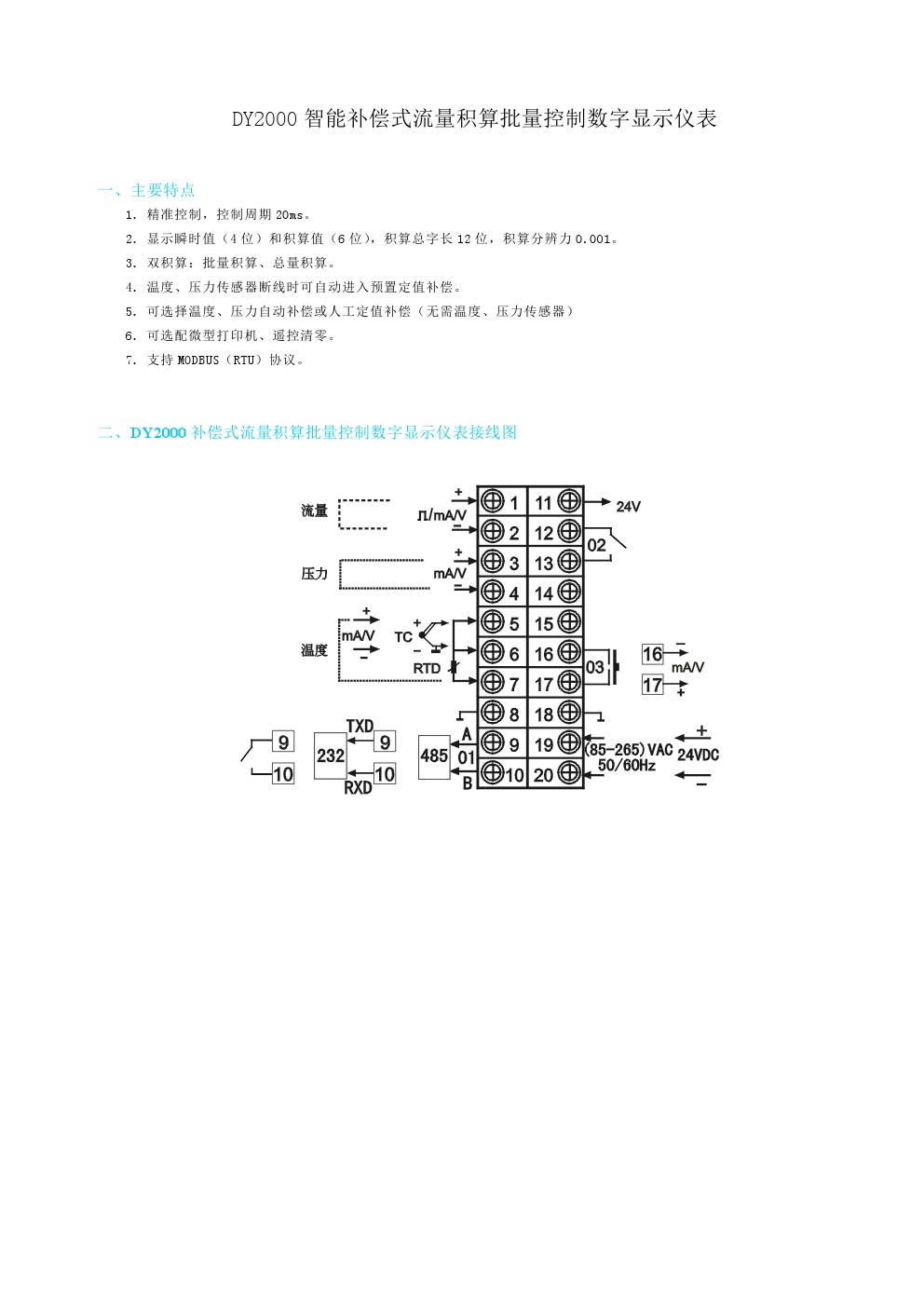 DY2000(AJ)流量積算帶PID調(diào)節(jié)控制數(shù)字顯示儀表