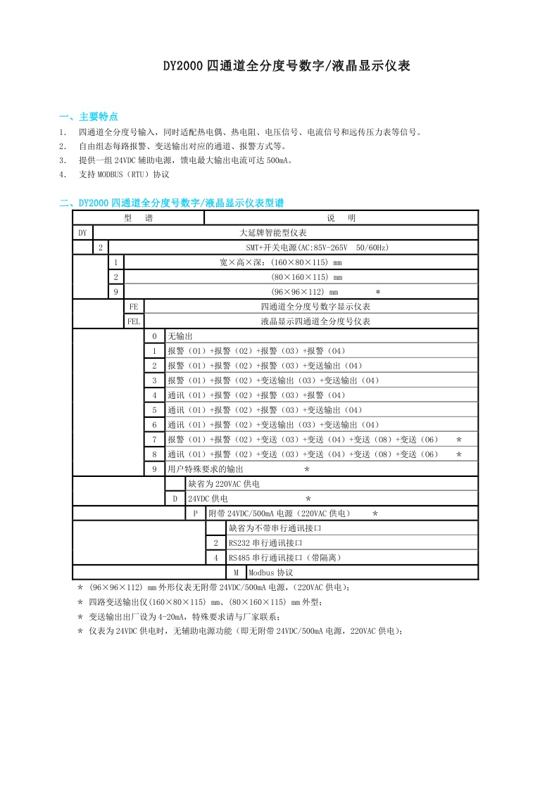 DY2000(FE)四通道全分度號(hào)數(shù)字/液晶顯示儀表