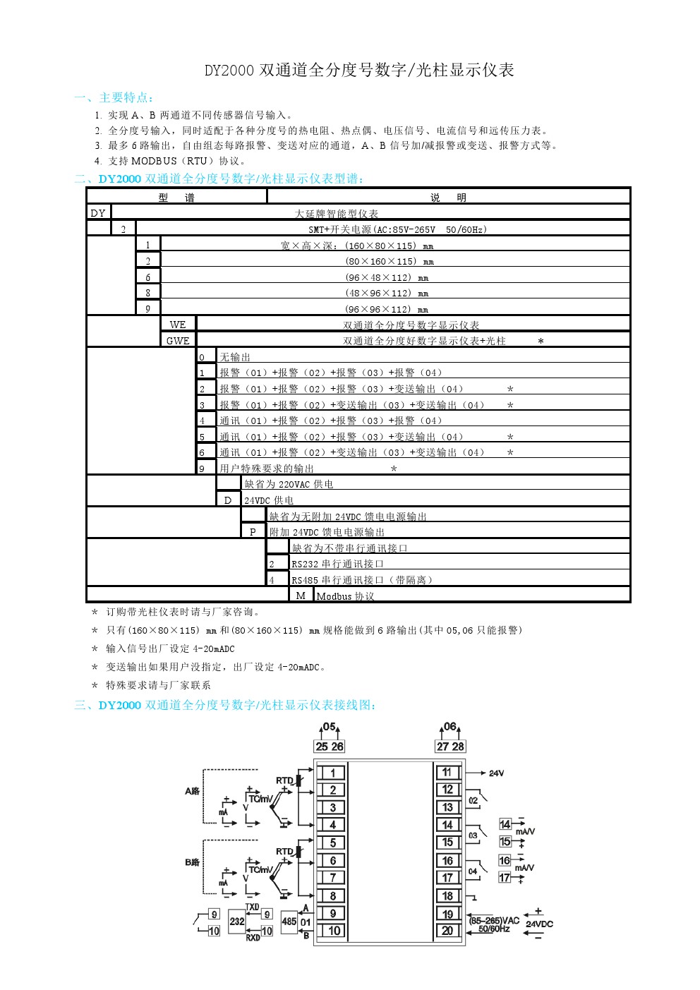 DY2000(WE)雙通道全分度號數(shù)字/光柱顯示儀表
