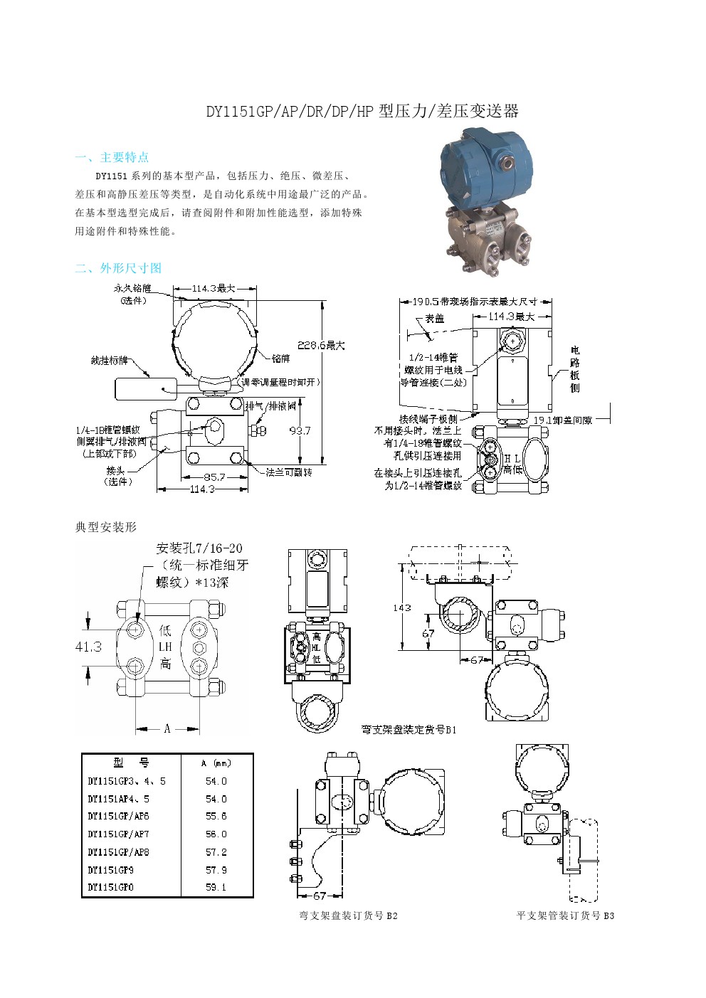 DY1151GP或AP或DR或DP或HP型壓力差壓變送器