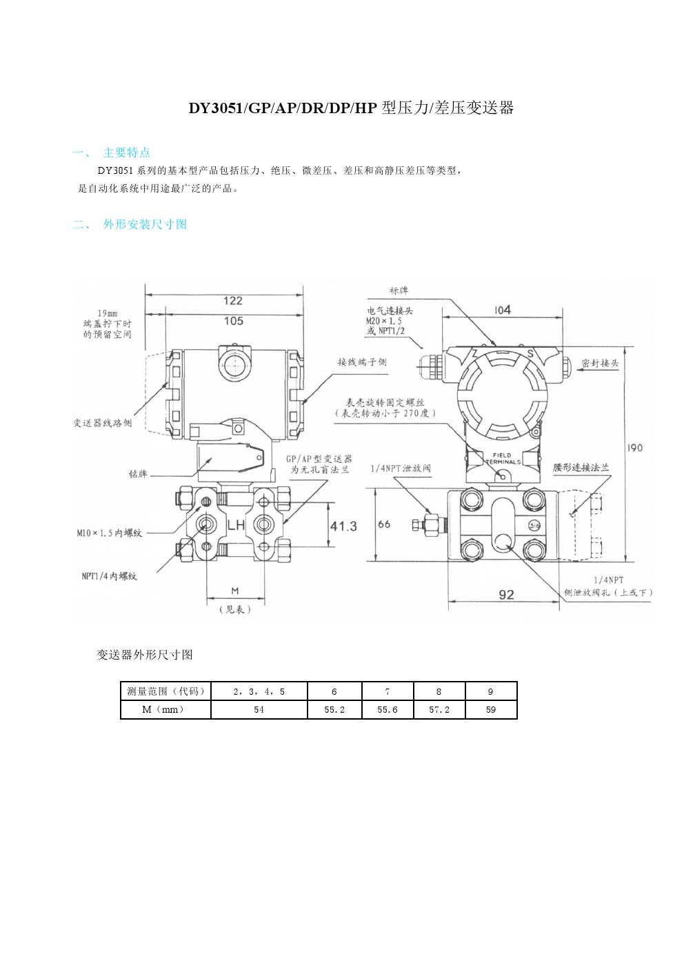 DY3051GPT或DPT遠(yuǎn)傳壓力差壓變送器
